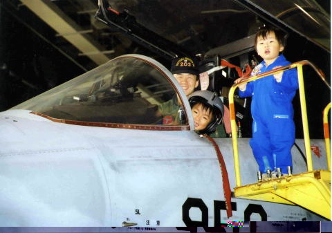 子供たちは実際の戦闘機に乗ることができて大喜びです。 二人ともパイロットになるのが夢なので、この思い出を いつまでも忘れないでね。 |