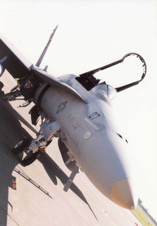 戦闘機のコックピットに腰掛けてはいチーズ!! |