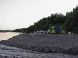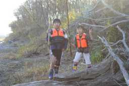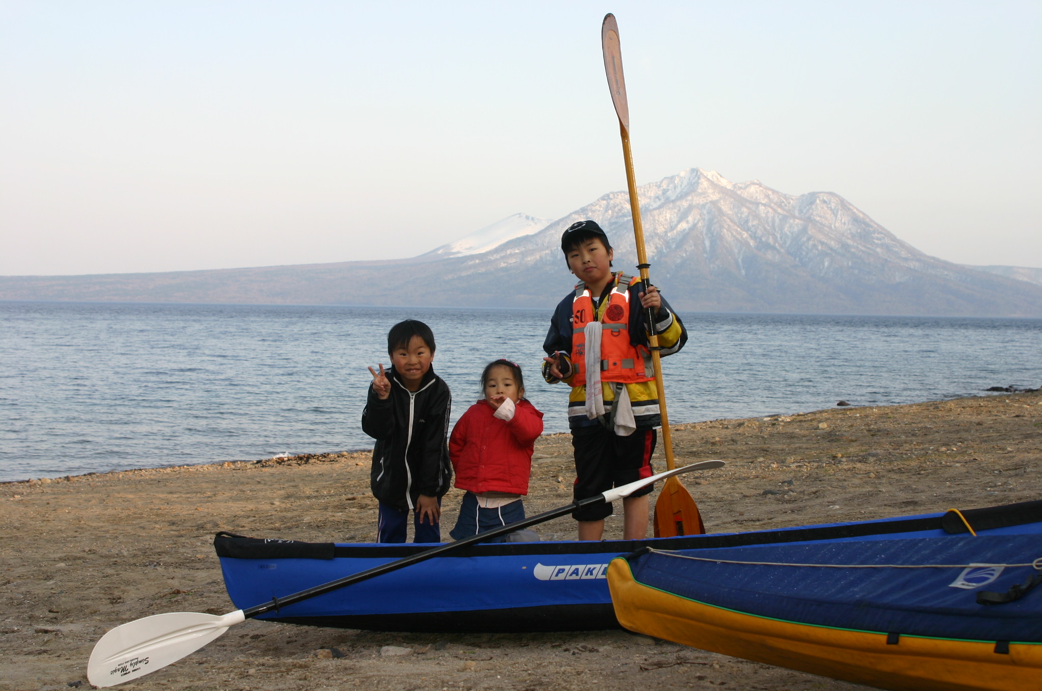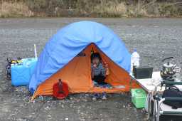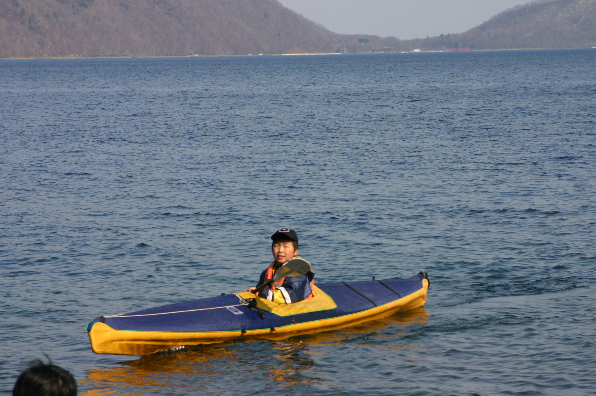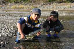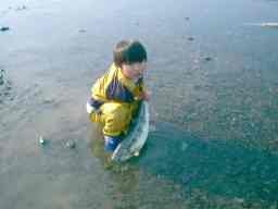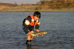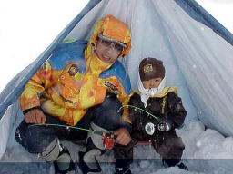2000年2月3歳の長男と凍った川でワカサギ釣りをしました