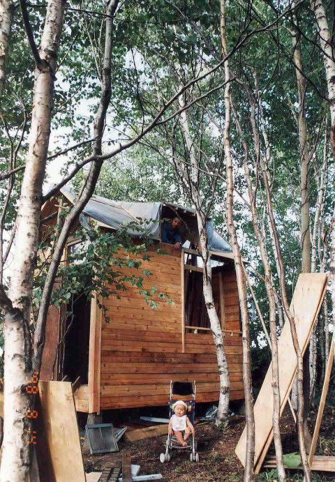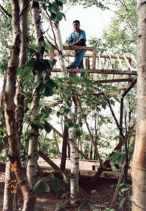 山小屋を建てるにあたり場所をいろいろと考えた結果、白樺の木立の
