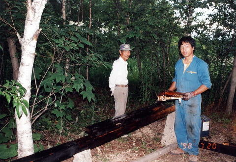 基礎の上にひく角材も、古くなった家を壊したときに出た廃材です。