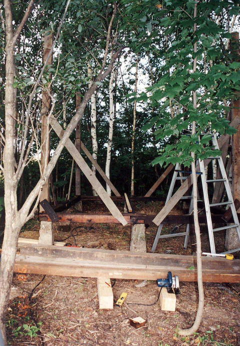 山小屋の建築場所は白樺林の中なので、しっかりと