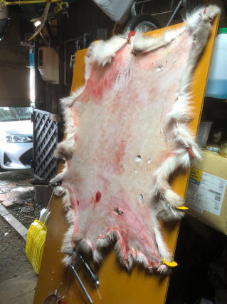 獲れた鹿の革は、敷物に変身します。 カモ猟では、マガモのオスが獲れました。