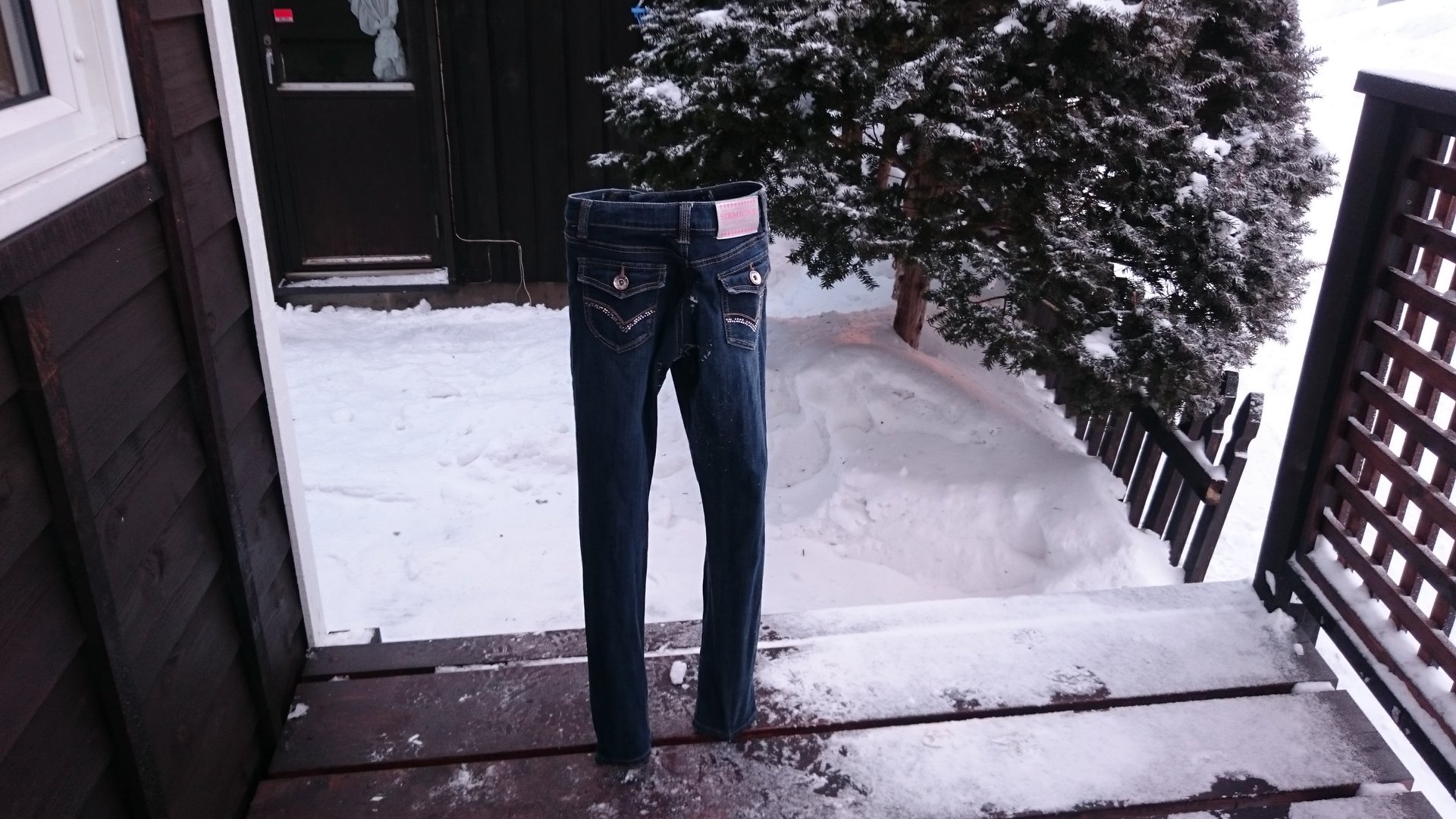『+』ではなく、『−』気温です。 濡らせたジーンズも30秒でこの通りです。